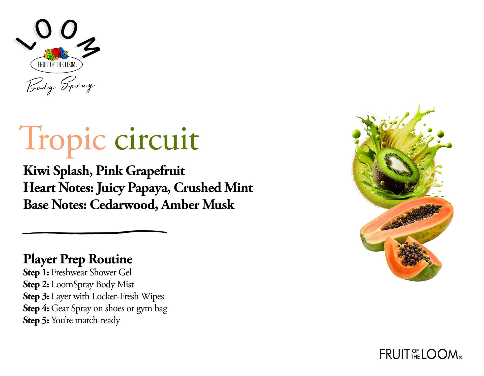 More than a fragrance, PLAYER is a movement. Fruit of the Loom steps into scent with a system built for athletes who demand confidence on the body and durability in the bag. Designer notes meet functional freshness, creating a new standard for performance care.